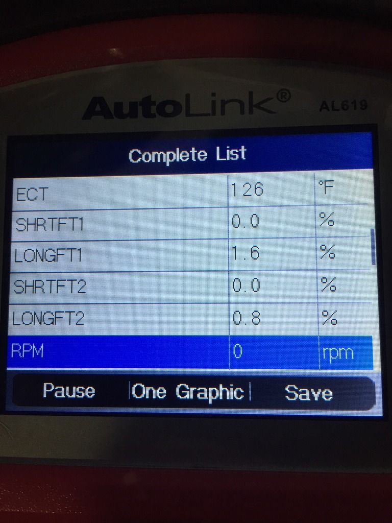 With the engine off the LongFT1 is 1.6% and LongFT2 is 0.8%. Both ShrtFT1 and 2 are 0%. The pictures below are before the rpms started jumping. The car was off.